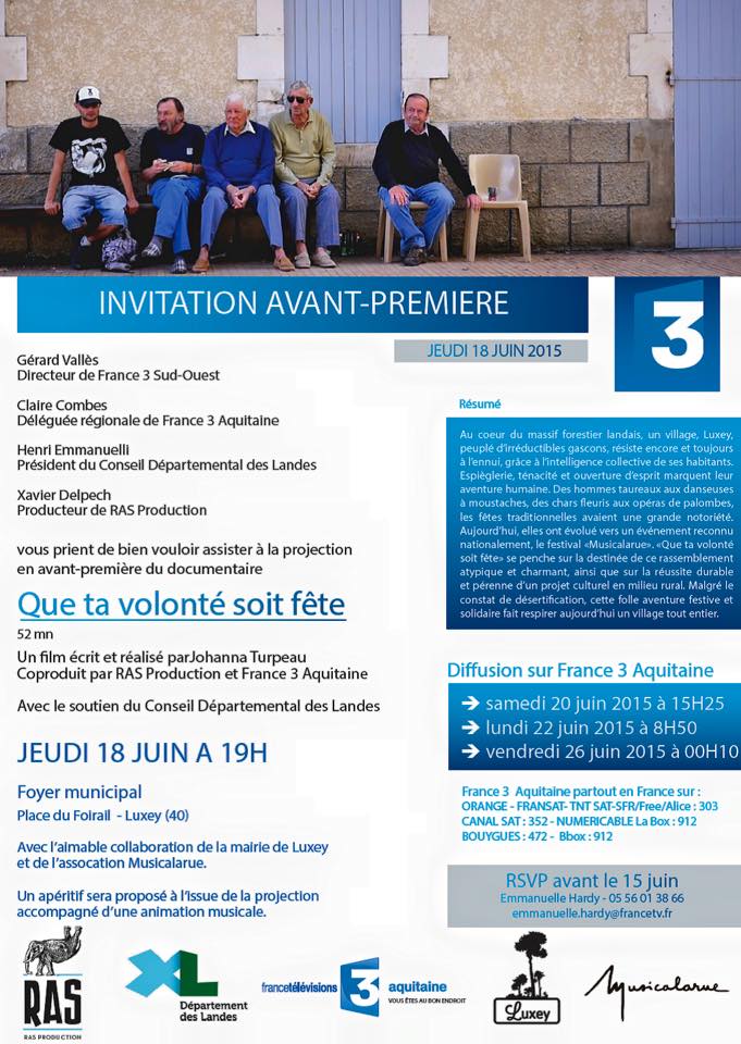 Le jeudi 18 juin à 19h en avant première à Luxey (sur réservation)
