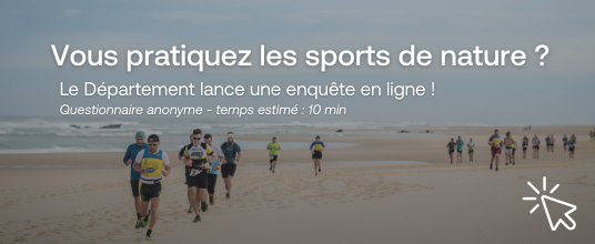 Pour bien comprendre les besoins des pratiquants des sports de nature dans les Landes et orienter sa politique, le Département lance une enquête en ligne ! Les sports de nature, ce sont toutes les activités sportives se déroulant en extérieur et mettant à profit le milieu naturel au moyen éventuellement de quelques adaptations (surf, randonnée, VTT, plongée, canoë...). Sont exclus les sports comme le golf ou le foot qui demandent des aménagements importants